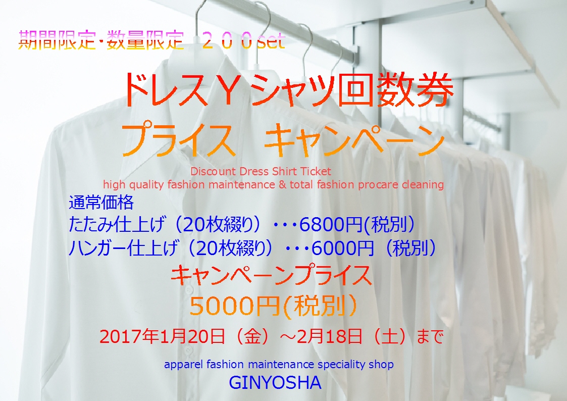 ドレスYシャツ回数券のプライスキャンペーンを本日1月20日より開催します。