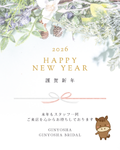 新年のご挨拶 お客様、関係者各位 あけましておめでとうございます。 謹んで新春をお祝い申し上げます 昨年は格別なご配慮を賜り厚く御礼申し上げます 本年は1月6日(火)より通常通り営業を始めます 本年も変わらぬご愛顧、よろしくお願いいたします。 GINYOSHA GINYOSHA BRIDAL Tweet 2026年1月2日 4:17 PM カテゴリー: 店舗情報